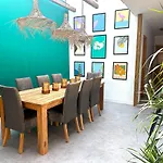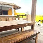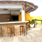 A La Guirra városi ingatlan önellátáshoz kávé/tea készítőt, hűtőt és sütőt biztosít az étkezőben és kültéri étkezőhelyen.
