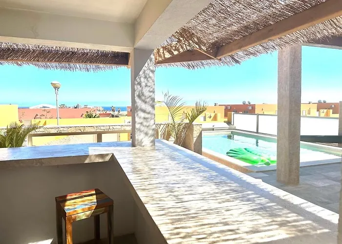A tengerre néző terasszal rendelkező 3 hálószobás Cloud Tropical - Piscina Climatizada - Gym Privado Villa La Guirra 20 perces autóútra fekszik a Fuerteventura repülőtértől.